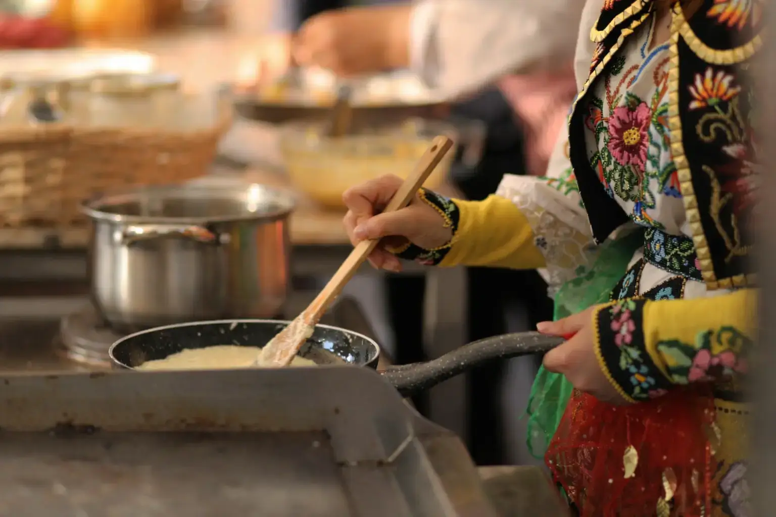 During the festival, local women, young girls, and even men participate in the making of lakror, showcasing a process that has remained unchanged for centuries. The dough is hand-rolled using an oklagija (rolling pin) on a wooden board (jastragaç). Around ten women work together to roll out the delicate layers of pastry, while two men manage the fire and heat the saç, and another two oversee the baking process.